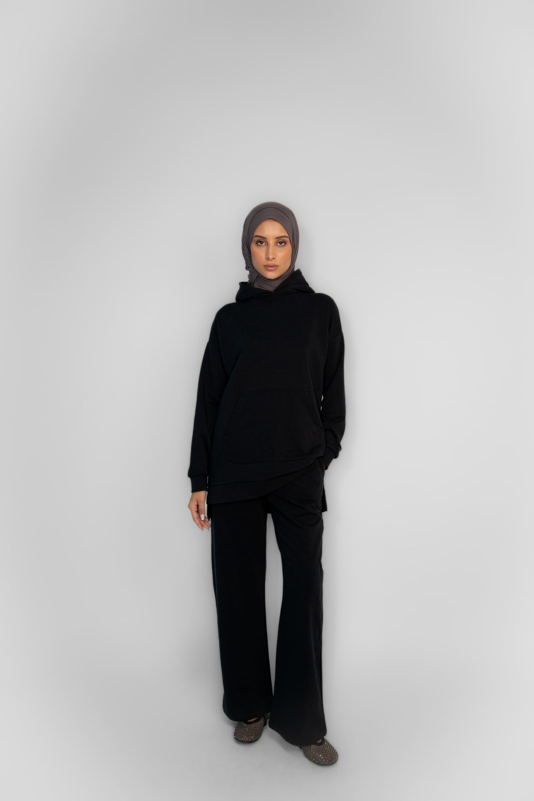 A soft cotton hoodie with ribbed finishes, side slits, and a front pocket. Relaxed and versatile,...