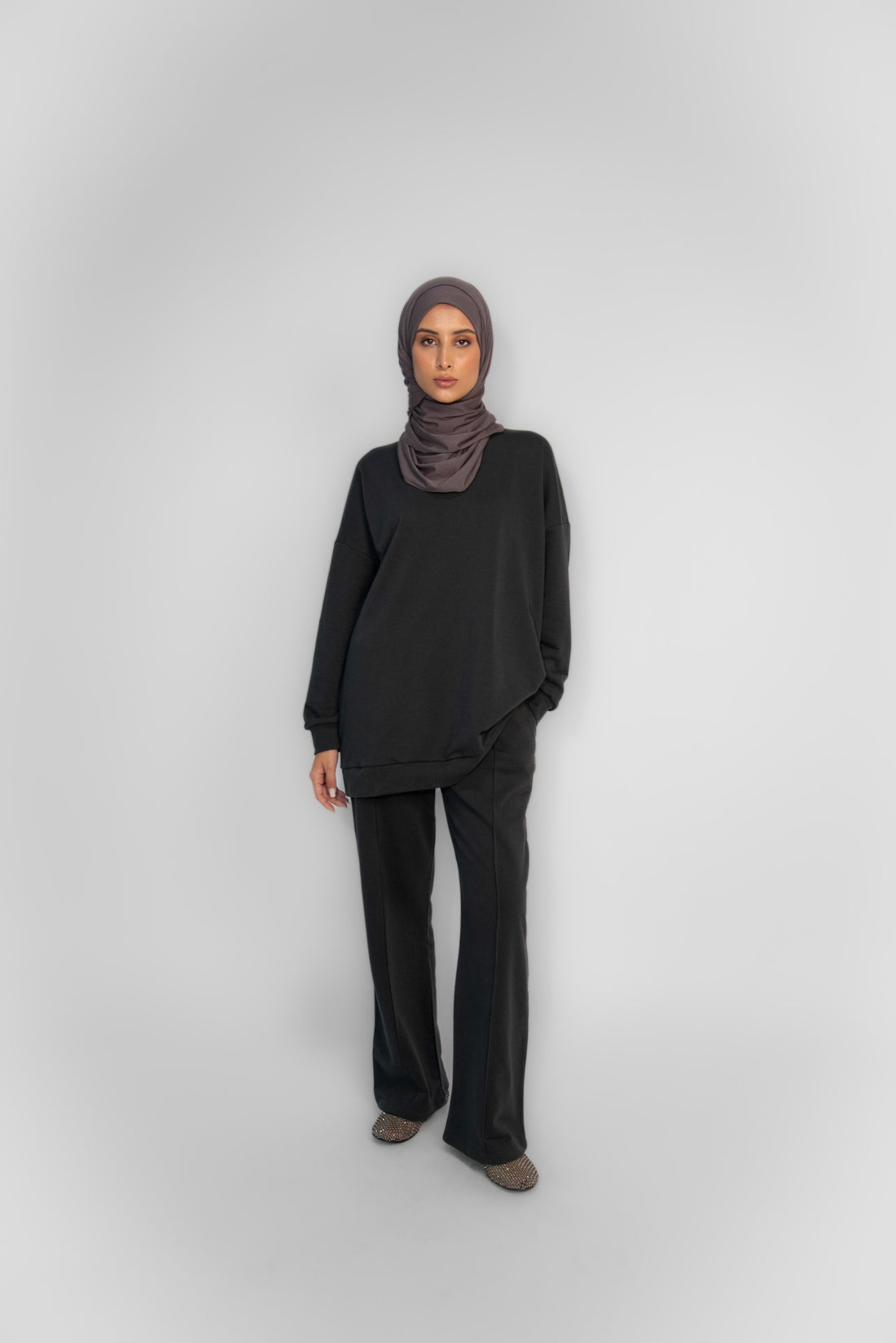 A mid-thigh blouse with a straight fit, flared sleeves, and delicate fabric-covered buttons. Minimal yet refined,...