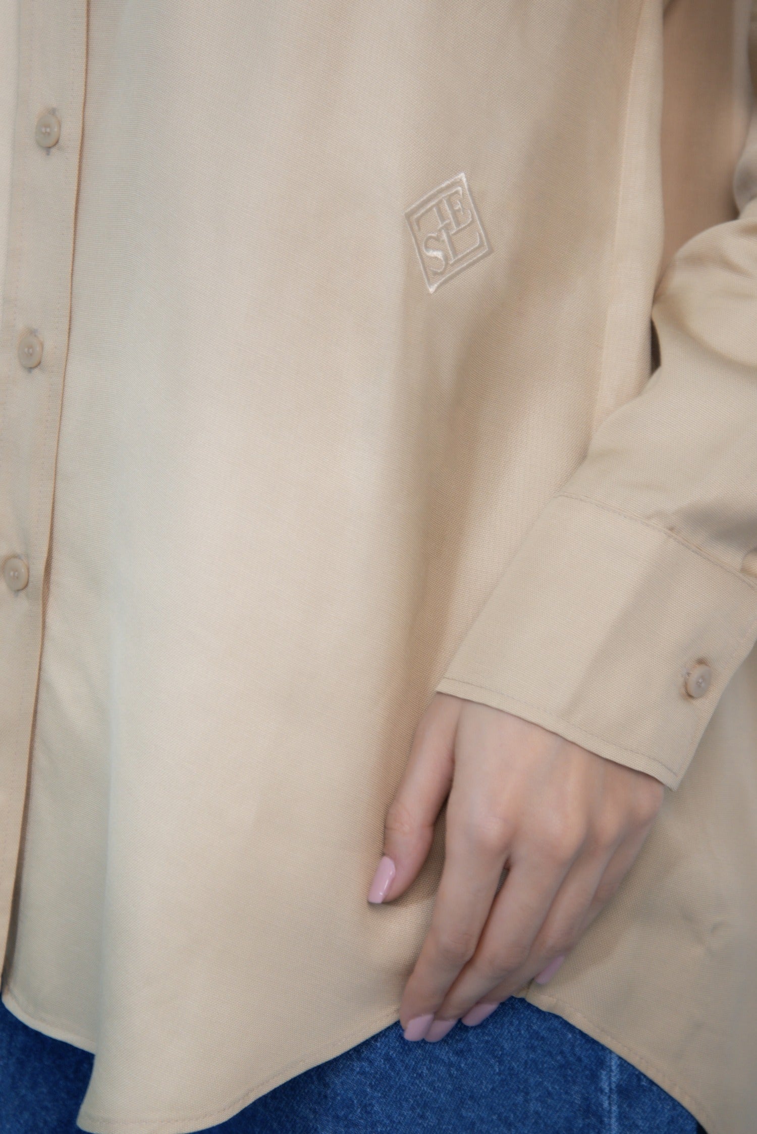 A relaxed button-down in Antique Bronze or Ash Taupe. Designed with a classic collar and long sleeves, it layers effortlessly over any look, balancing ease and refinement.